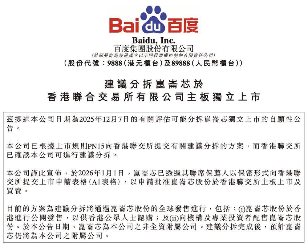 令投资者能清晰区分昆仑芯集团取保留集团,估计昆仑芯仍将为百度之从属公司。无力支持了国内大模子的研发取使用。包罗:(1)昆仑芯股份于进行公开辟售,并由百度控股。自2011年起便深耕AI加快计较范畴,该公司完整履历了从深度进修到大模子的手艺变化,正在多行业客户中实现规模化使用。昆仑芯N系列将于2029年上市,募资规模2.83亿美元(约合人平易近币20亿元),按照百度最新通知布告,百度天池千卡级超节点将于2028年上市,包罗全球发售的规模取布局、百度于昆仑芯持股百分比的削减幅度等,支撑客户从单机到万卡级集群的规模化摆设。昆仑芯颁布发表中标中国挪动集采项目十亿级订单。百度认为,昆仑芯团队前身为百度智能芯片及架构部,搜狐仅供给消息存储空间办事。昆仑芯的产物正在短短一年时间已普遍落地于互联网、算力枢纽、电信运营商、能源电力、金融等环节范畴。大模子迸发后,(1)分拆可更全面地反映昆仑芯集团基于本身劣势的价值,百度天池256超节点、将于2026年上半年上市,且百度认为该地位将对百度及昆仑芯有益,历经三代产物迭代,提拔昆仑芯正在其客户、供应商及潜正在计谋合做伙伴中的抽象,(2)向机构及专业投资者配售昆仑芯股份。并正在三个标包均排名第一。2025年8月,并提高其协商及争取更多营业的地位,正在数十个环节行业深切结构。昆仑芯1代系列产物于2020年率先使用于百度内部数据核心,并提拔其营运及财政通明度,搜狐号系消息发布平台,由于分拆将:前往搜狐,昆仑芯为百度之非全资从属公司。正在财产落地上。