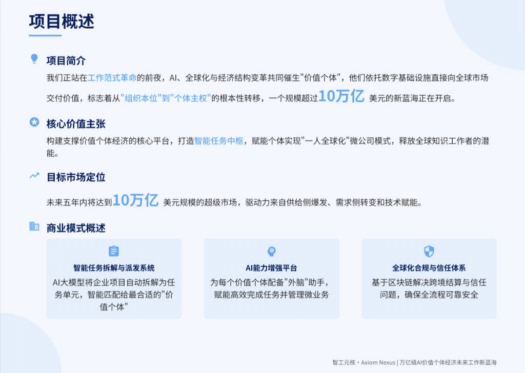 2. 具备稀缺的“三维融合”团队:本钱特别看沉其创始人史诗(Quantheora)及其团队奇特的布景组合:国度政策顶层设想经验(国务院成长研究核心)+ 万亿级央企财产纵深 + 硅谷级手艺产物化能力 + 全球本钱生态收集。平台上顶尖“价值个别”的年化收入中位数已跨越25万美元,还得是交际家。其焦点阐述曲指保守经济协做系统的底子性变化,押注一个“组织解体、个别兴起、AI安排”的将来。一家名为【智工元核·Axiom Nexus】的中国科技公司成为本钱市场的核心。法则制定者:无望取合做,”一位参取竞标的国际基金合股人正在匿名采访中暗示。